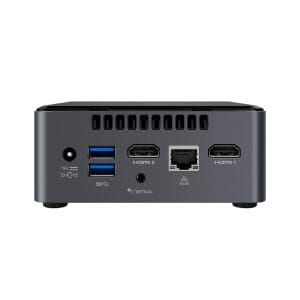 De NUC7PJYH is de opvolger van één van zeer complete Intel NUC6CAYH. De NUC7PJYH is zeer geschikt voor als een mediaspeler, digital signage speler of als een systeem voor kantoor omgevingen. In de nieuwste NUC wordt ook de nieuwste processor ondersteunt. De NUC7PJYH heeft de nieuwste Pentium J5005. De Intel Pentium J5005 heeft een kloksnelheid van 4x 1.5 – 2.8 GHz en heeft een TDP van 10W. Daarnaast is er een nieuwe Intel UHD 605 grafische kaart, die voldoende kracht heeft om 4K beeldmateriaal op 60fps af te spelen. De NUC7PJYH heeft ruimte voor maximaal 8GB werkgeheugen, 1x 2.5″ HDD/SSD en 1x M.2 SSD (in gebruik voor de wifi). De NUC7PJYH heeft ook een ruime aanbod aan aansluitingen. Aan de achterkant kan je het volgende vinden: 2x HDMI 2.0a, Gigabit LAN, 2x USB3.0 en aan de voorkant is er nog een tweetal USB 3.0 (waarvan 1 oplaadpoort voor randapparatuur) aansluiting. Al met al is de NUC7PJYH een NUC die geschikt is voor tal van toepassingen.