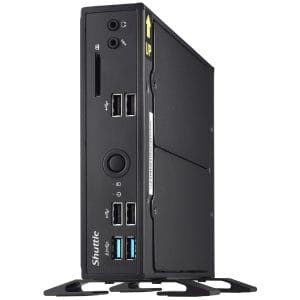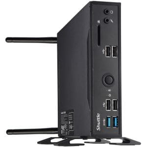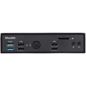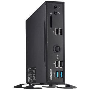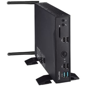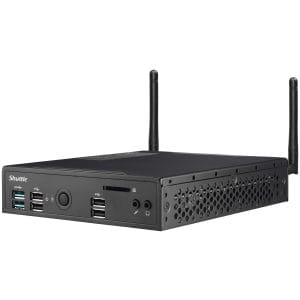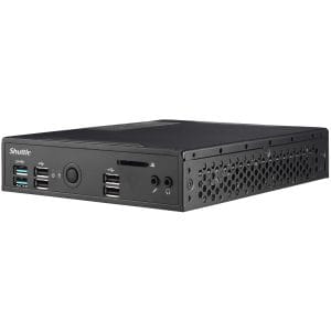 De Shuttle Barebone DS10U is een passief gekoelde Micro PC met een robuuste 1.3 liter metalen chassis en uitzonderlijke connectiviteit, zoals: 1x HDMI 2.0a, DisplayPort 1.2, VGA, twee Intel LAN poorten, USB 3.1/3.0/2.0, seriële poort, audio, kaartlezer en WLAN 802.11AC met antennes. Het installeren van componenten is zeer simpel. Er is voldoende ruimte voor twee geheugen modules, een 2.5″ schijf en een M.2 (2280) module. De ingebouwde Dual-Core Intel Intel Celeron 4205U (ULV) “Whiskey Lake” processor met geïntegreerde Intel HD Graphics 610 biedt voldoende prestaties voor een vloeiende beeld bij 4K content. Dankzij zijn opnieuw ontworpen passieve koeling architectuur is het systeem vrijwel onderhoud vrij en gecertificeerd voor 24/7 nonstop gebruik. De DS10U biedt veel prestaties terwijl het toch extreem energiezuinig zijn werk uitvoert. De Shuttle SlimPC DS10U is een ideale platform voor digital signage, POS, Kiosk, Thin Client, Cloud Computing, Office PC en multimedia.